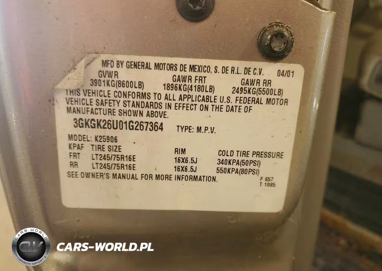 Copart Nr: C-46774786 VIN: 3GKGK26U01G267364 Port: Indianapolis, IN