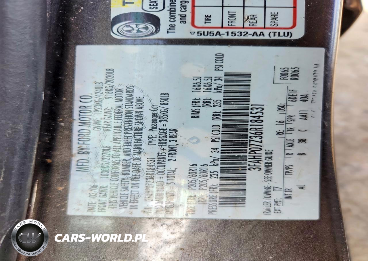Copart Nr: C-46776346 VIN: 3FAHP07Z36R184531 Port: Elizabeth, NJ