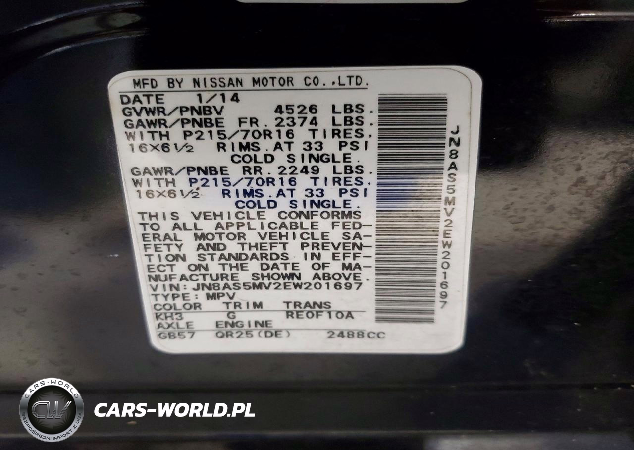 Copart Nr: C-46810376 VIN: JN8AS5MV2EW201697 Port: Elizabeth, NJ