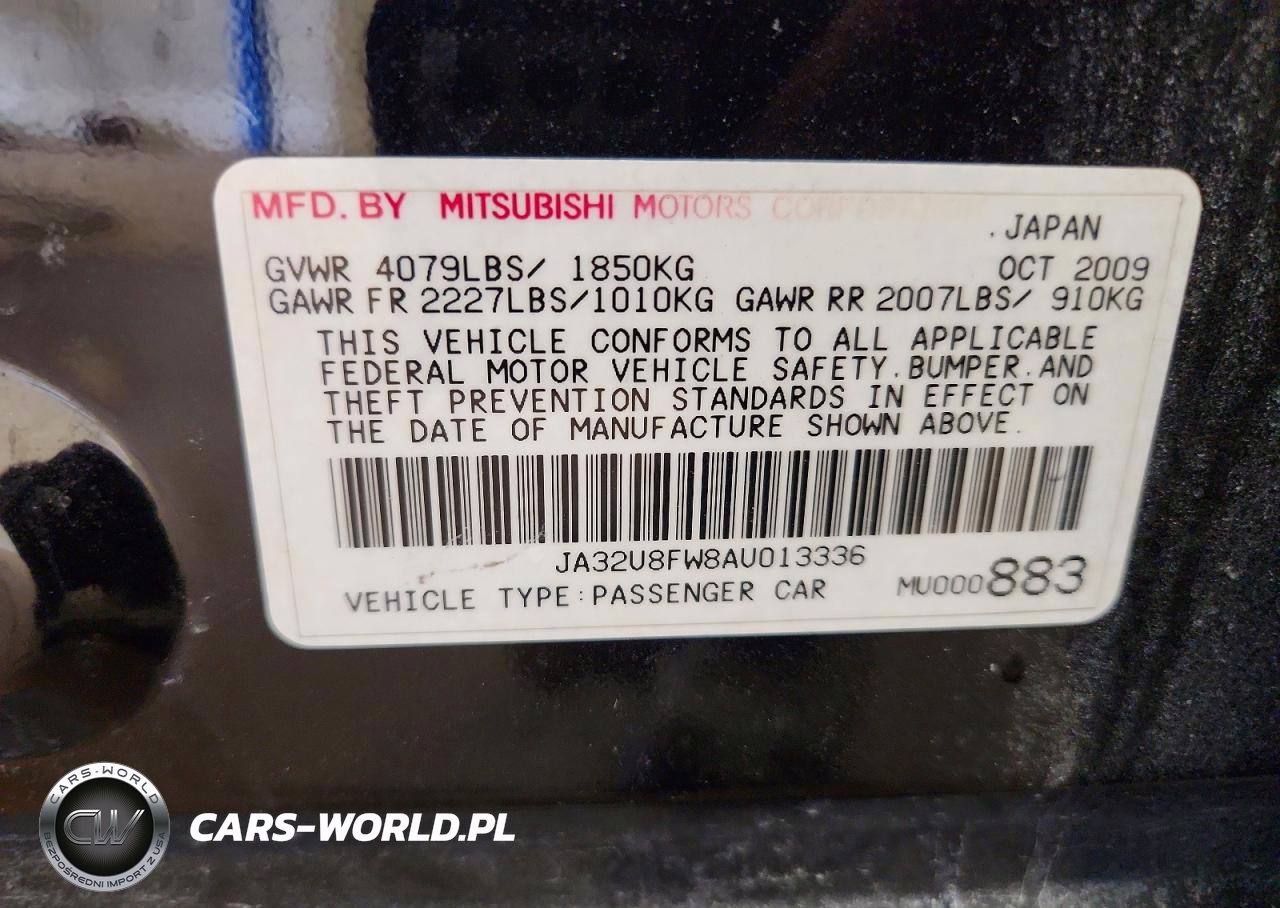 Copart Nr: C-46822346 VIN: JA32U8FW8AU013336 Port: Elizabeth, NJ