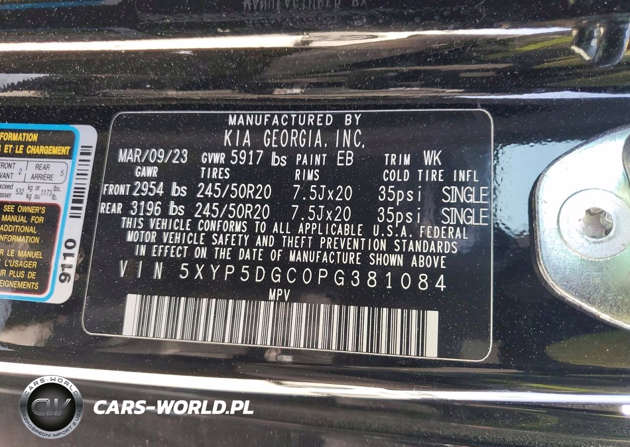 Copart Nr: C-46872766 VIN: 5XYP5DGC0PG381084 Port: Savannah, GA