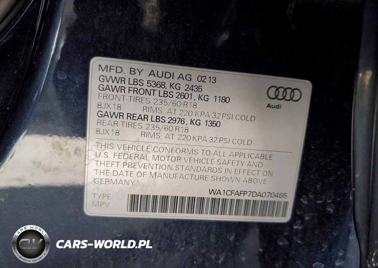 Copart Nr: C-46880876 VIN: WA1CFAFP7DA070465 Port: Indianapolis, IN