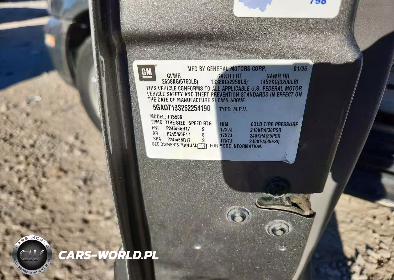 Copart Nr: C-46901036 VIN: 5GADT13S262254190 Port: Los Angeles, CA