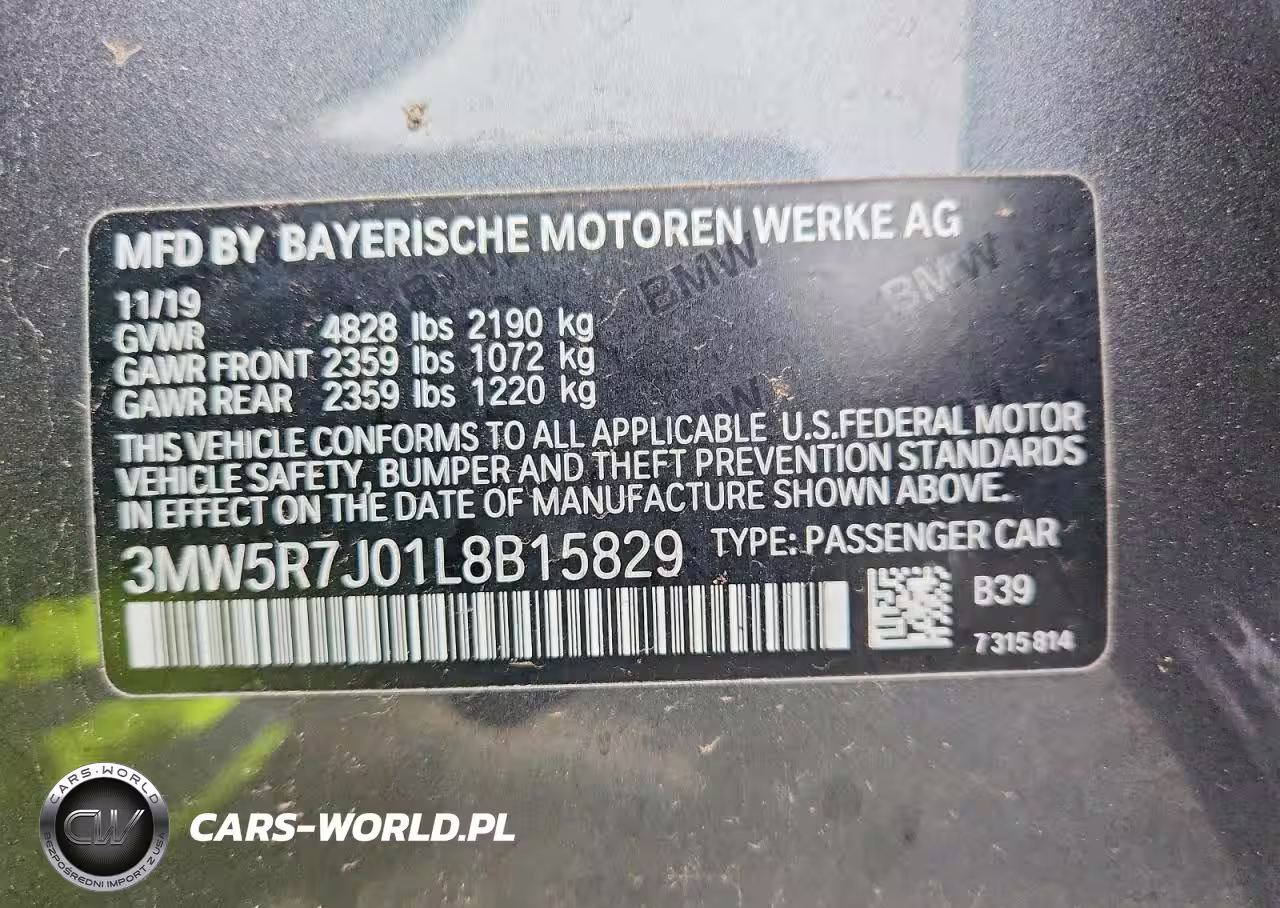 Copart Nr: C-46904046 VIN: 3MW5R7J01L8B15829 Port: Elizabeth, NJ