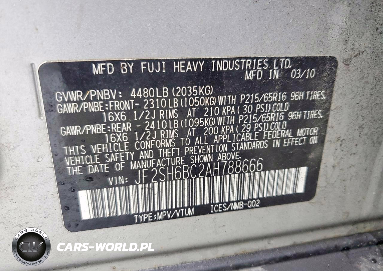 Copart Nr: C-46906046 VIN: JF2SH6BC2AH788666 Port: Elizabeth, NJ