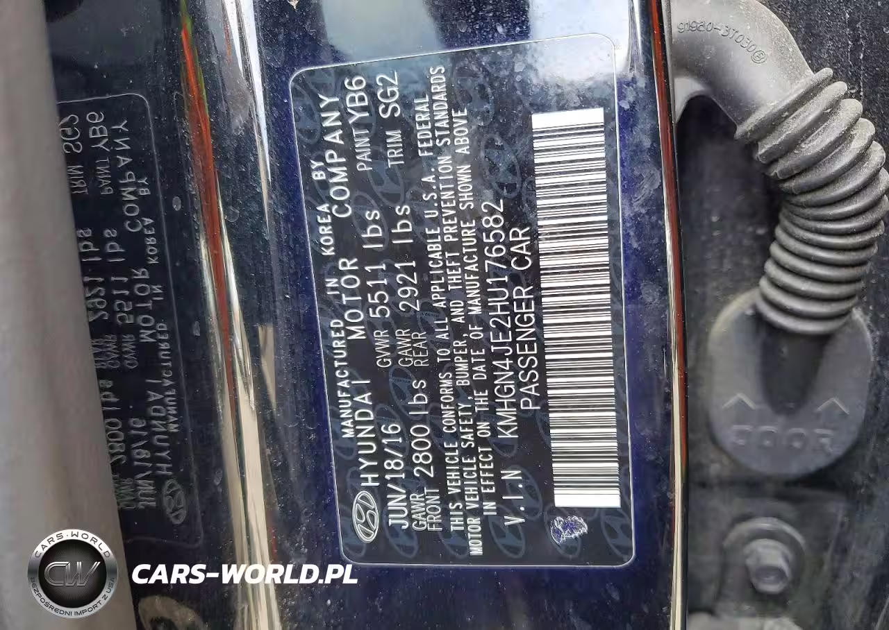 Copart Nr: C-46907926 VIN: KMHGN4JE2HU176582 Port: Elizabeth, NJ