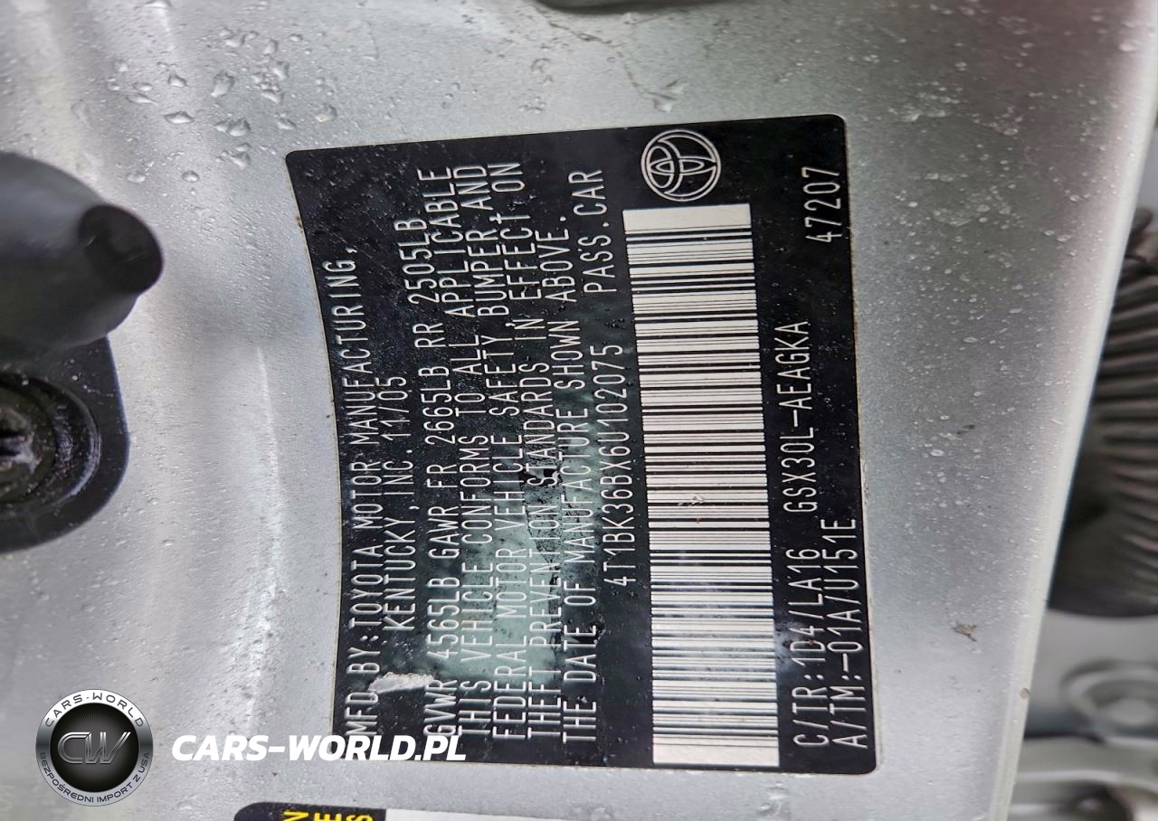 Copart Nr: C-46920396 VIN: 4T1BK36BX6U102075 Port: Savannah, GA