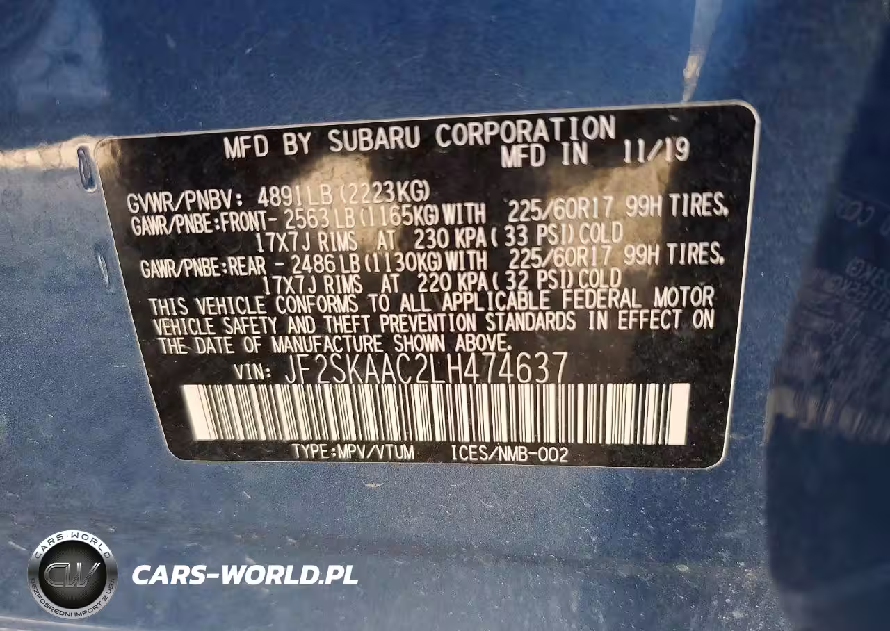 Copart Nr: C-46935356 VIN: JF2SKAAC2LH474637 Port: Houston, TX