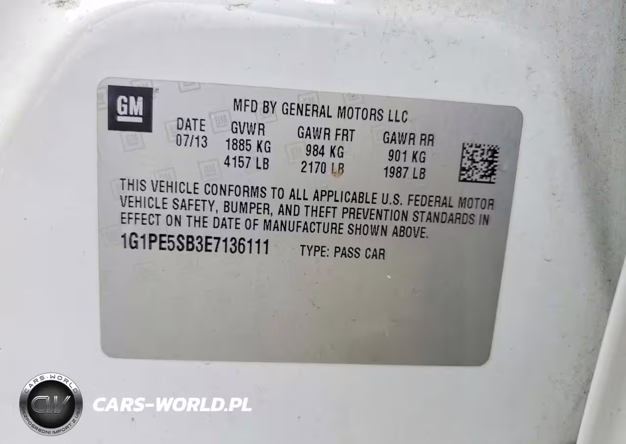 Copart Nr: C-46935816 VIN: 1G1PE5SB3E7136111 Port: Elizabeth, NJ