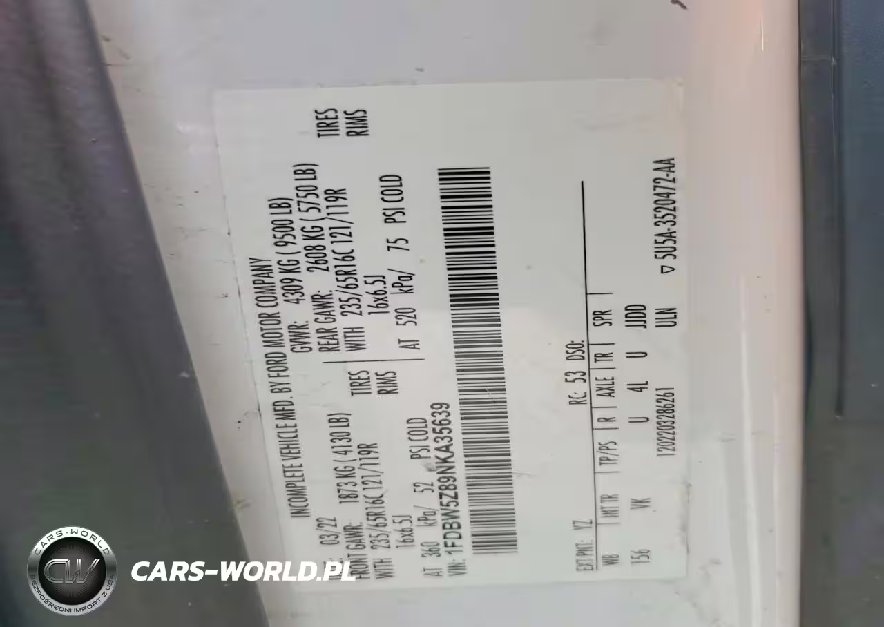 Copart Nr: C-46949366 VIN: 1FDBW5Z89NKA35639 Port: Houston, TX