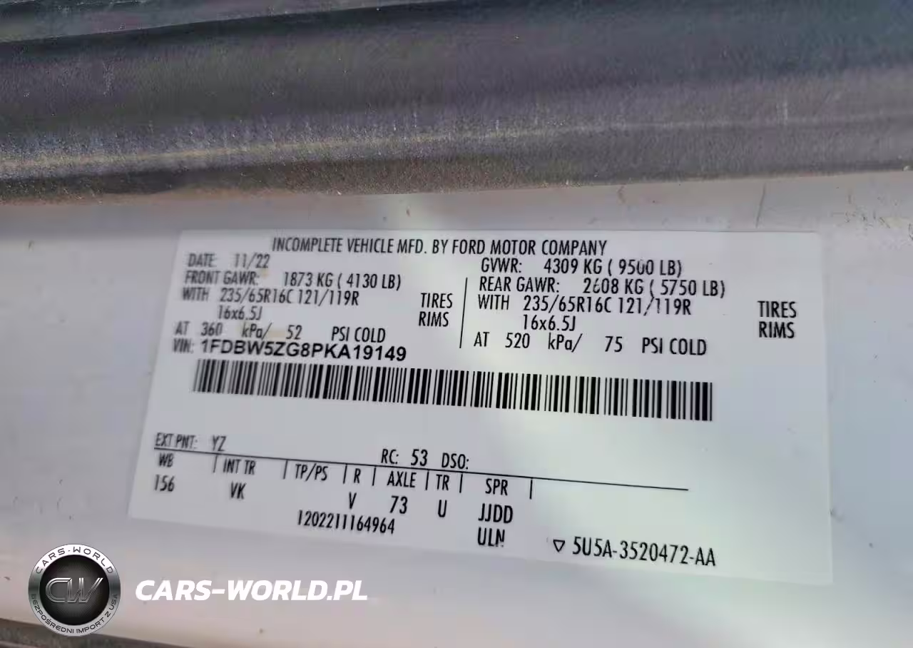 Copart Nr: C-46949786 VIN: 1FDBW5ZG8PKA19149 Port: Houston, TX