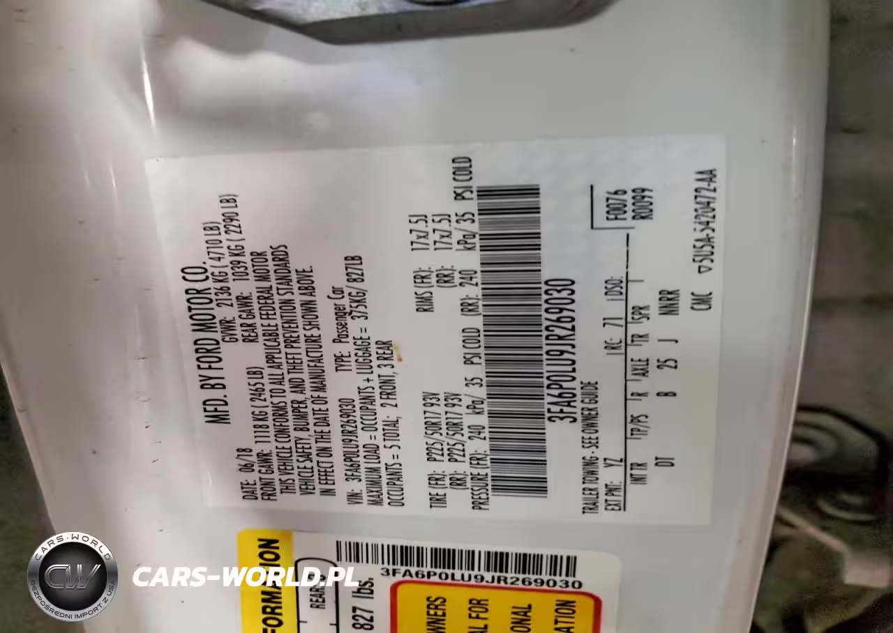 Copart Nr: C-46960176 VIN: 3FA6P0LU9JR269030 Port: Indianapolis, IN