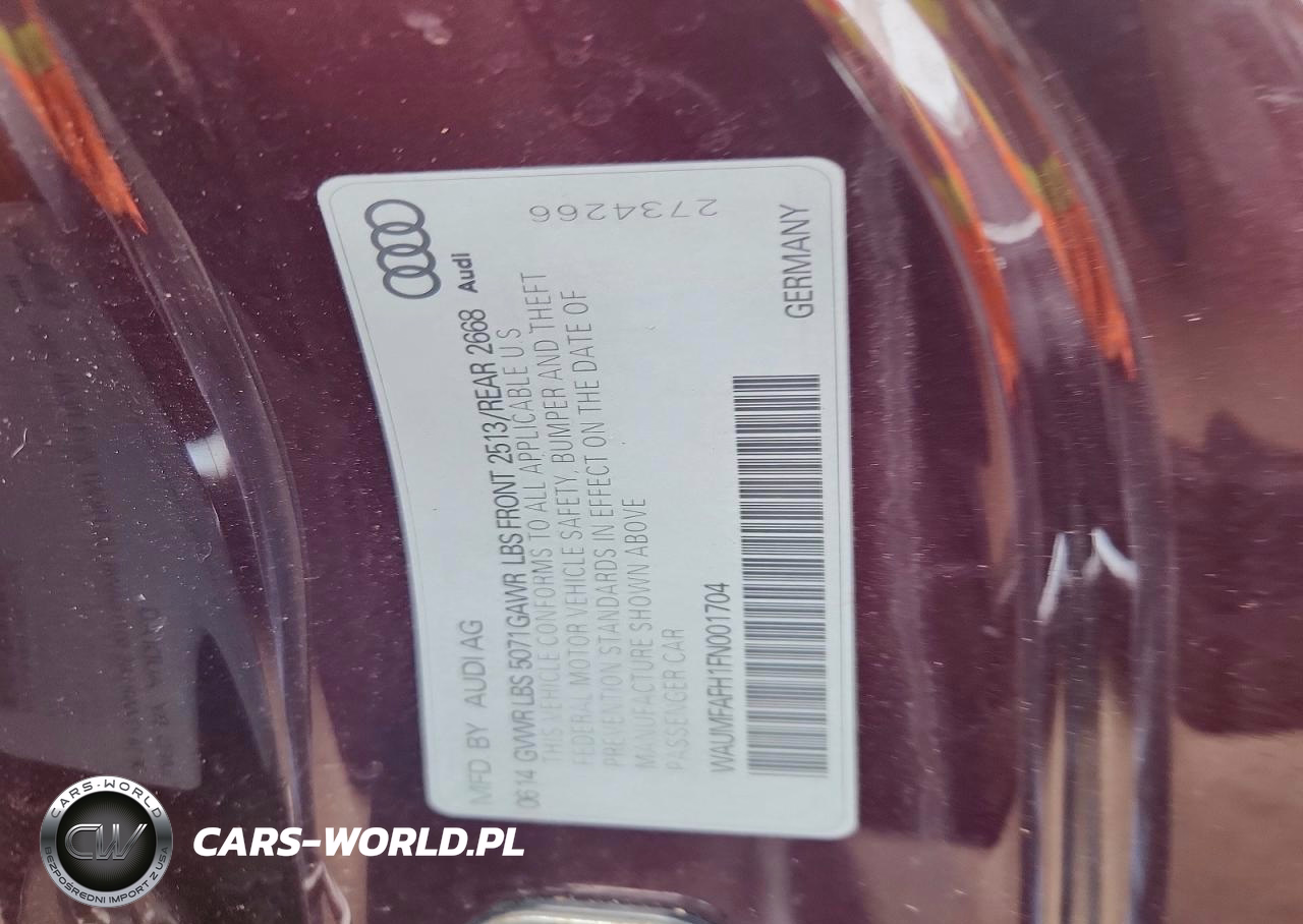 Copart Nr: C-46982166 VIN: WAUMFAFH1FN001704 Port: Elizabeth, NJ