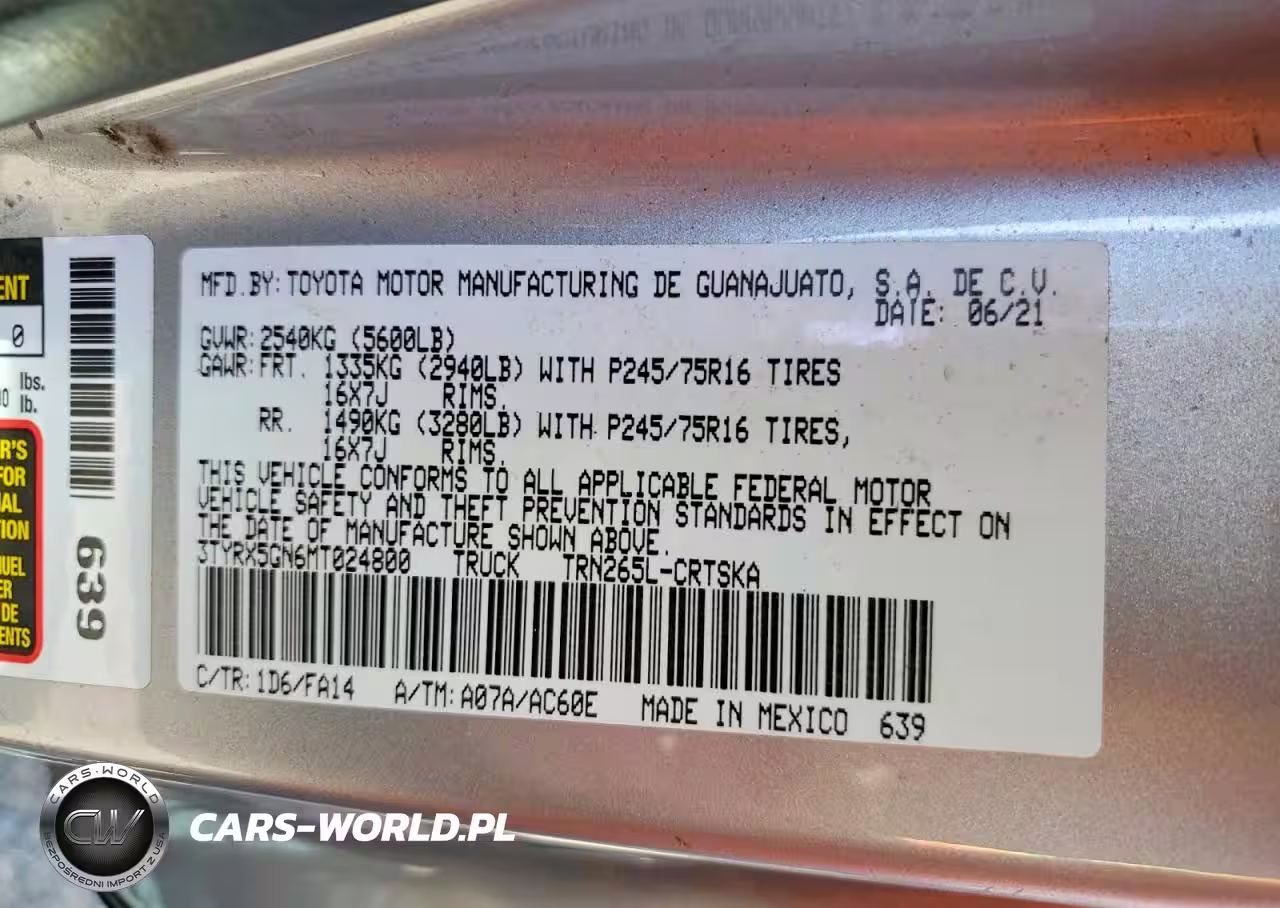Copart Nr: C-46983376 VIN: 3TYRX5GN6MT024800 Port: Elizabeth, NJ