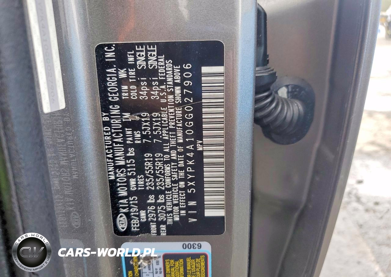 Copart Nr: C-47015676 VIN: 5XYPK4A10GG027906 Port: Savannah, GA