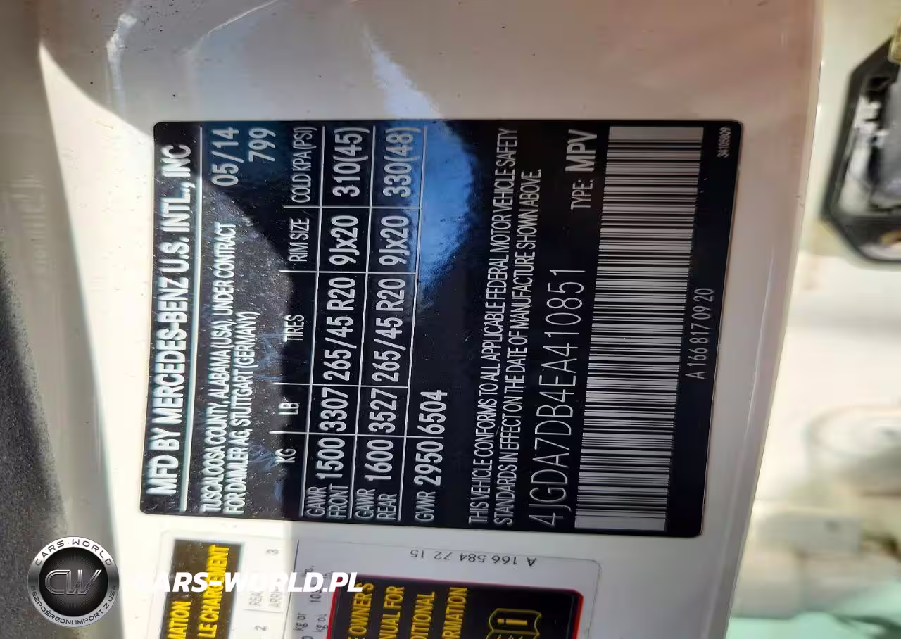 Copart Nr: C-47019576 VIN: 4JGDA7DB4EA410851 Port: Savannah, GA