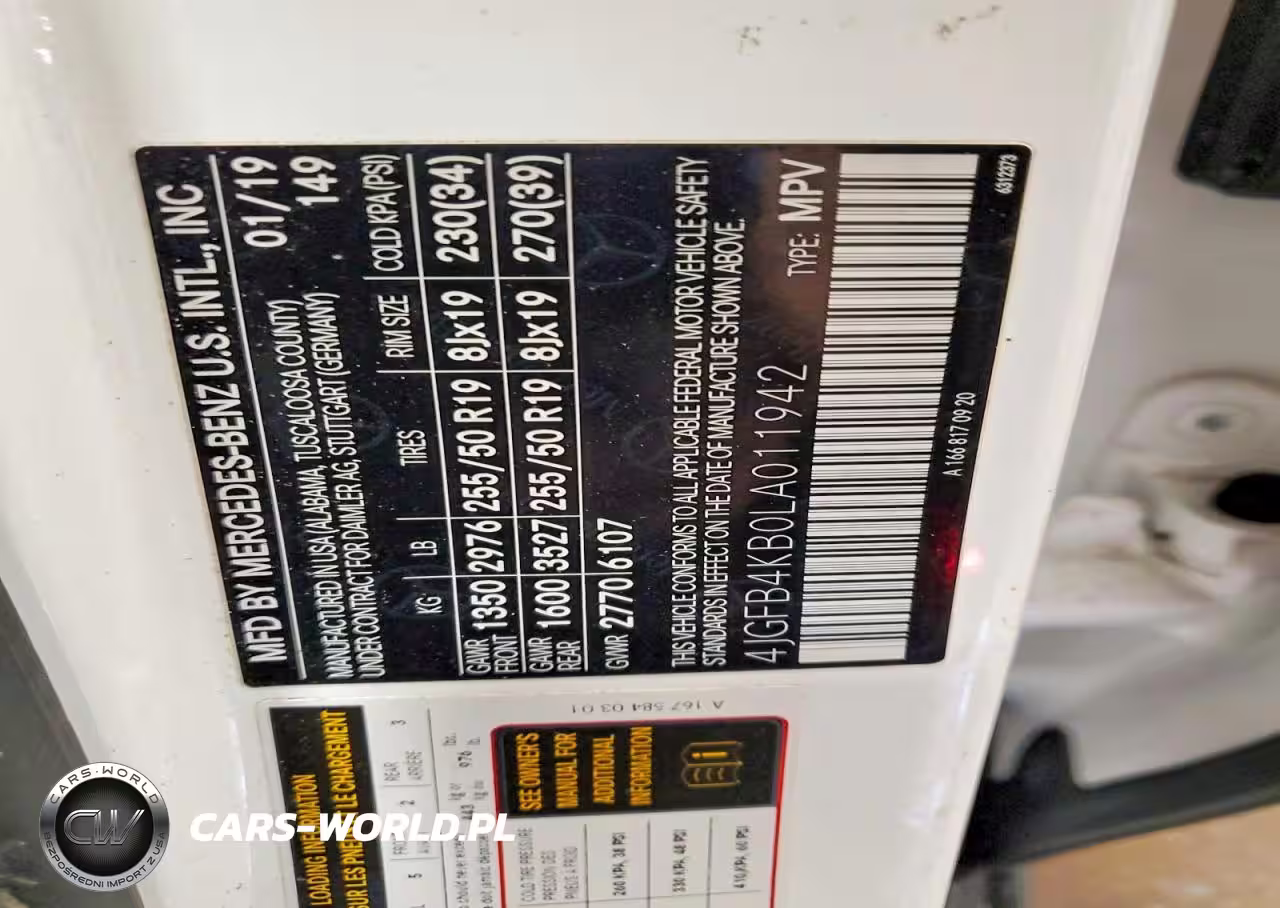 Copart Nr: C-47023366 VIN: 4JGFB4KB0LA011942 Port: Elizabeth, NJ