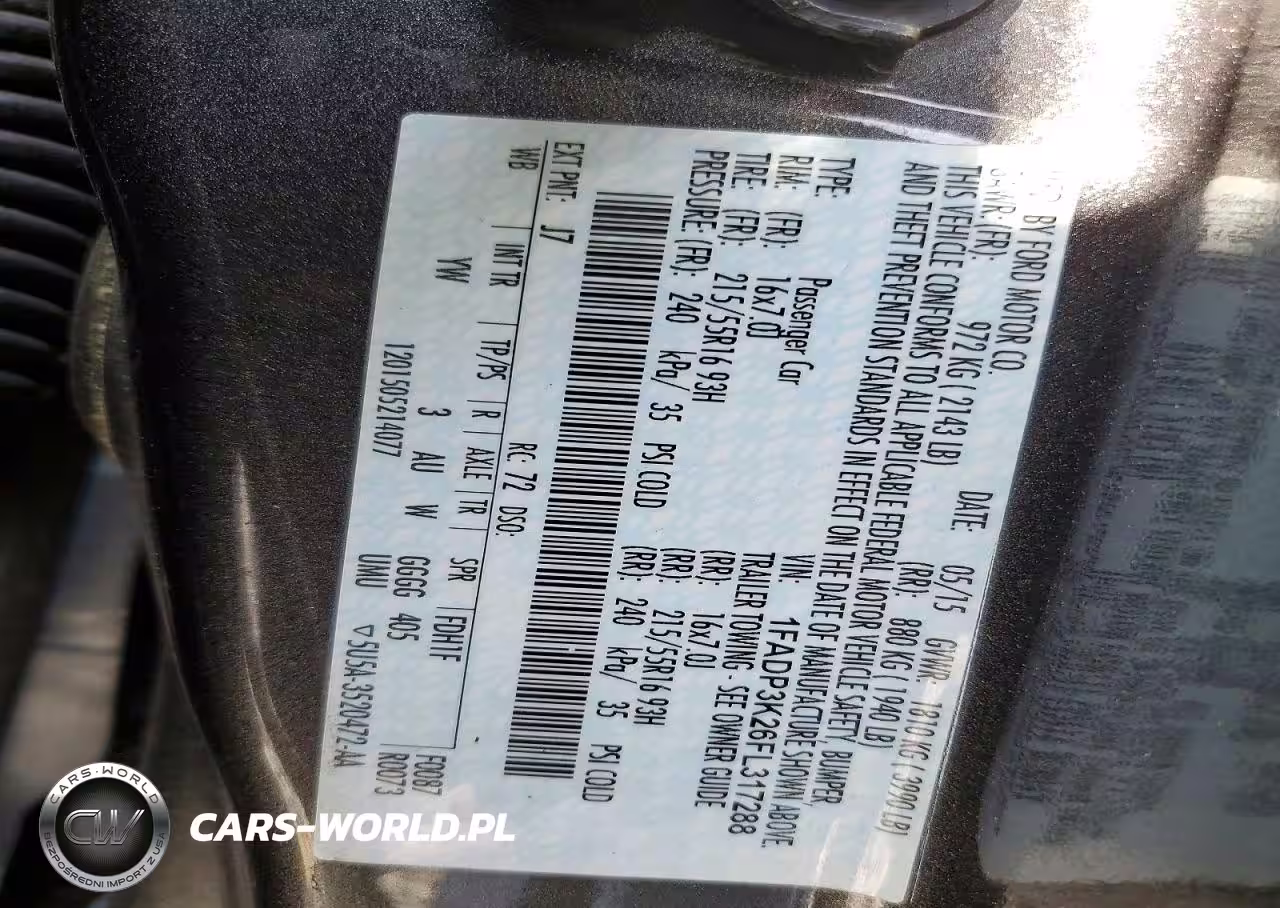 Copart Nr: C-47034876 VIN: 1FADP3K26FL317288 Port: Savannah, GA
