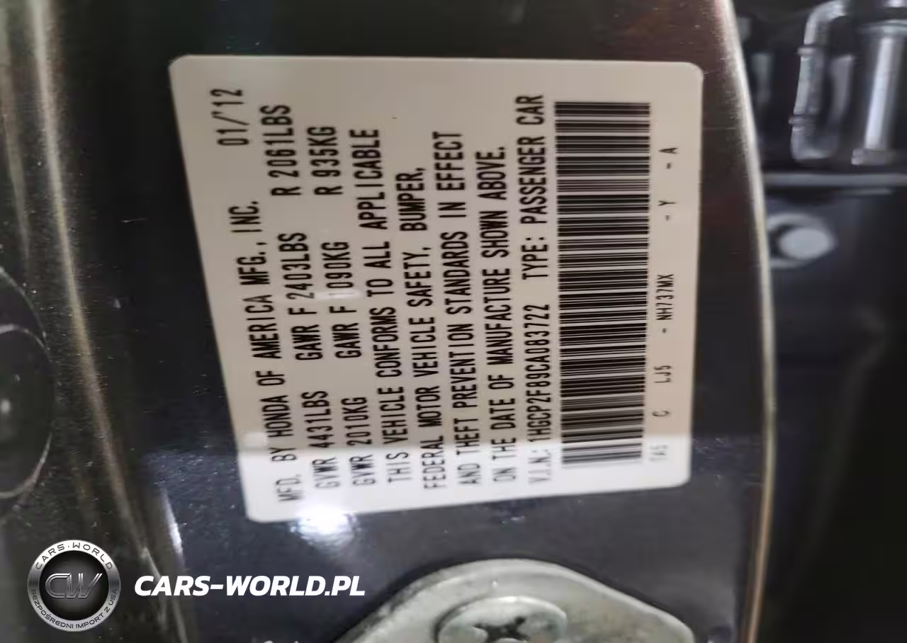 Copart Nr: C-47039796 VIN: 1HGCP2F89CA083722 Port: Indianapolis, IN