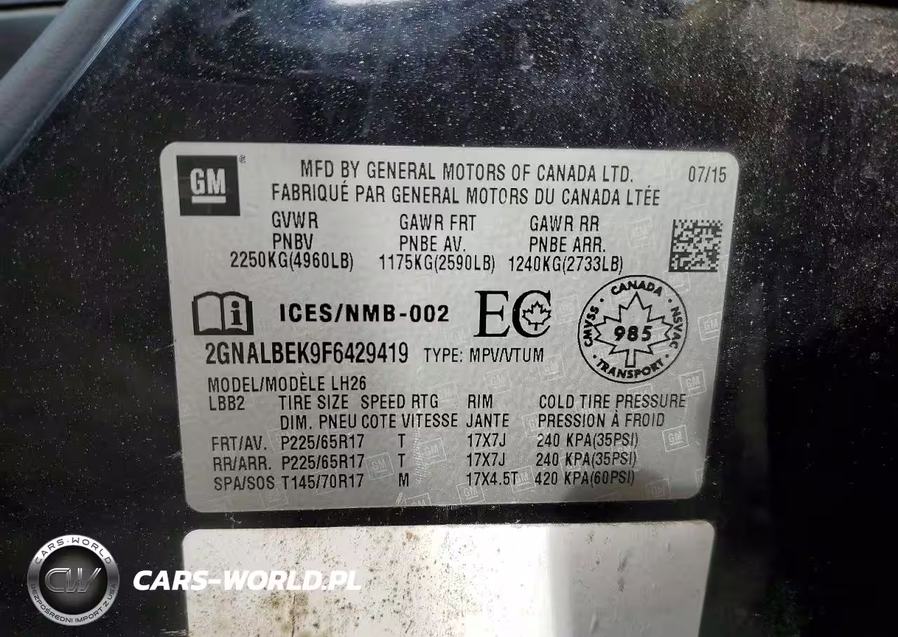Copart Nr: C-47049666 VIN: 2GNALBEK9F6429419 Port: Indianapolis, IN