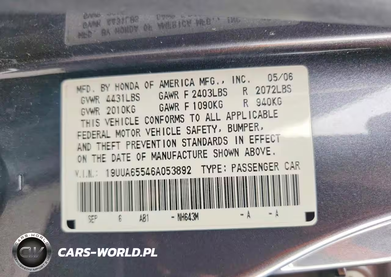 Copart Nr: C-47064766 VIN: 19UUA65546A053892 Port: Los Angeles, CA