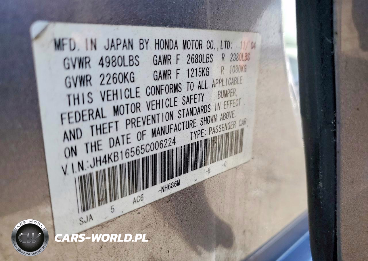 Copart Nr: C-47082796 VIN: JH4KB16565C006224 Port: Elizabeth, NJ