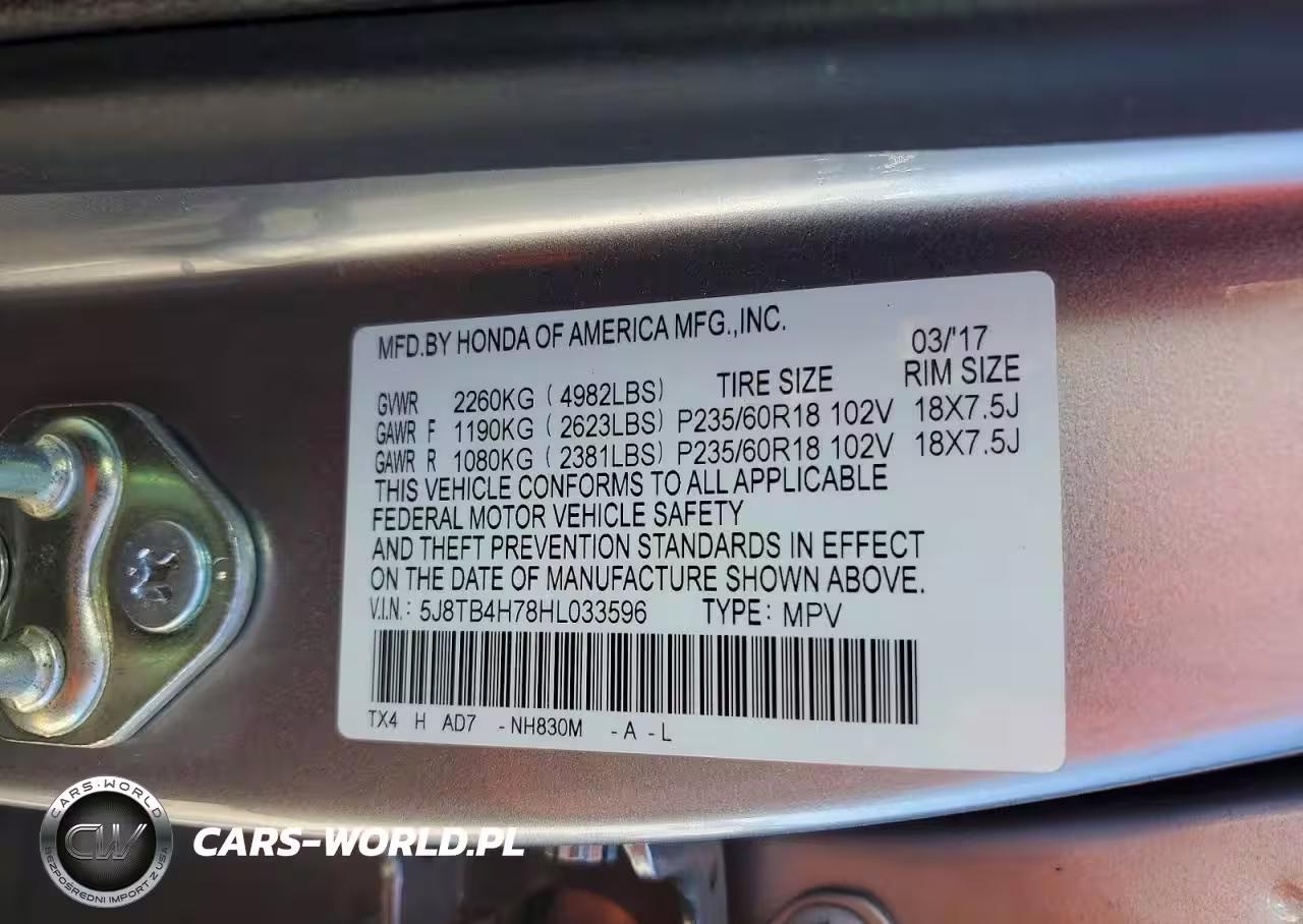 Copart Nr: C-47109966 VIN: 5J8TB4H78HL033596 Port: Savannah, GA