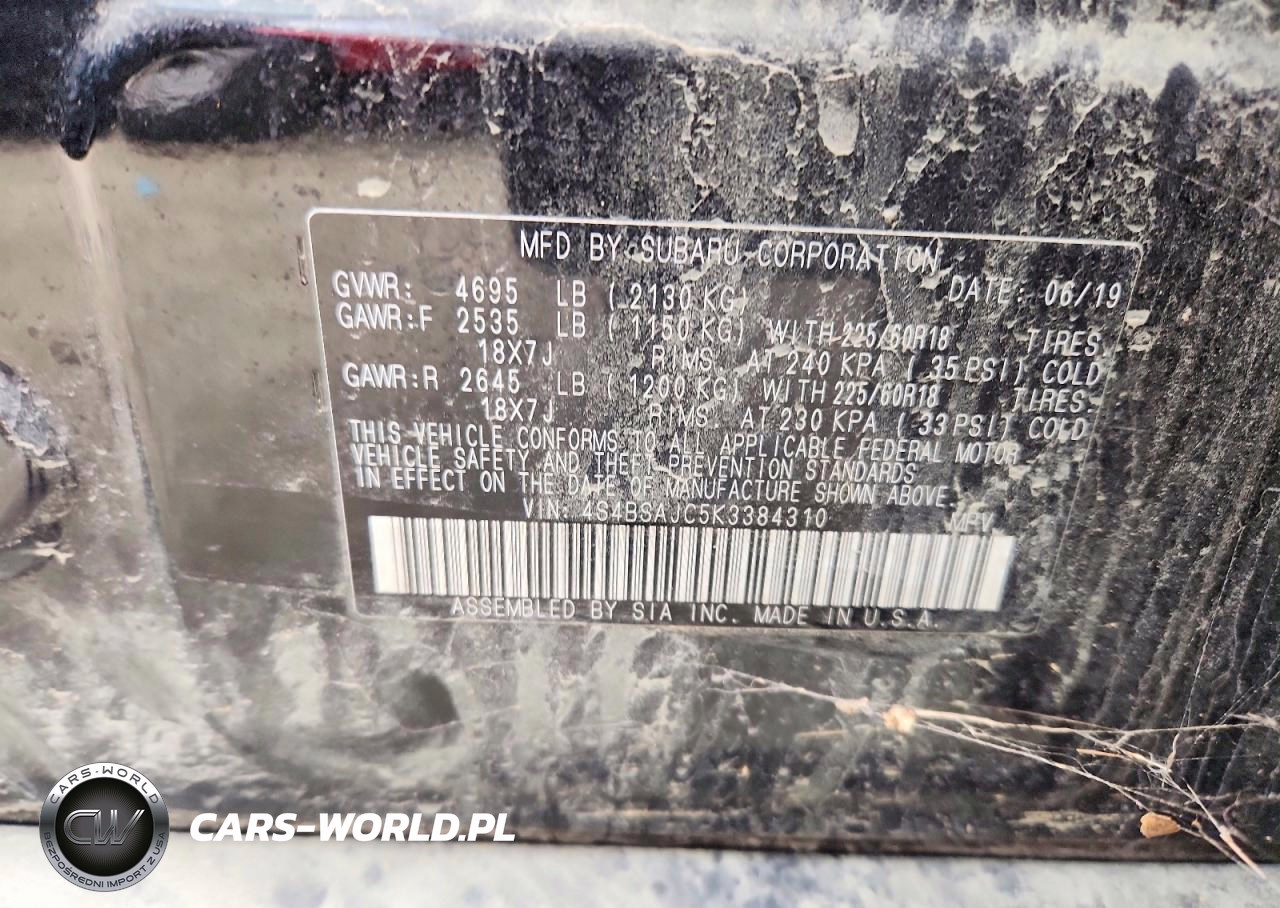 Copart Nr: C-47127236 VIN: 4S4BSAJC5K3384310 Port: Elizabeth, NJ