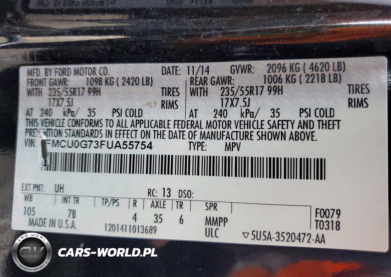 Copart Nr: C-47136616 VIN: 1FMCU0G73FUA55754 Port: Elizabeth, NJ