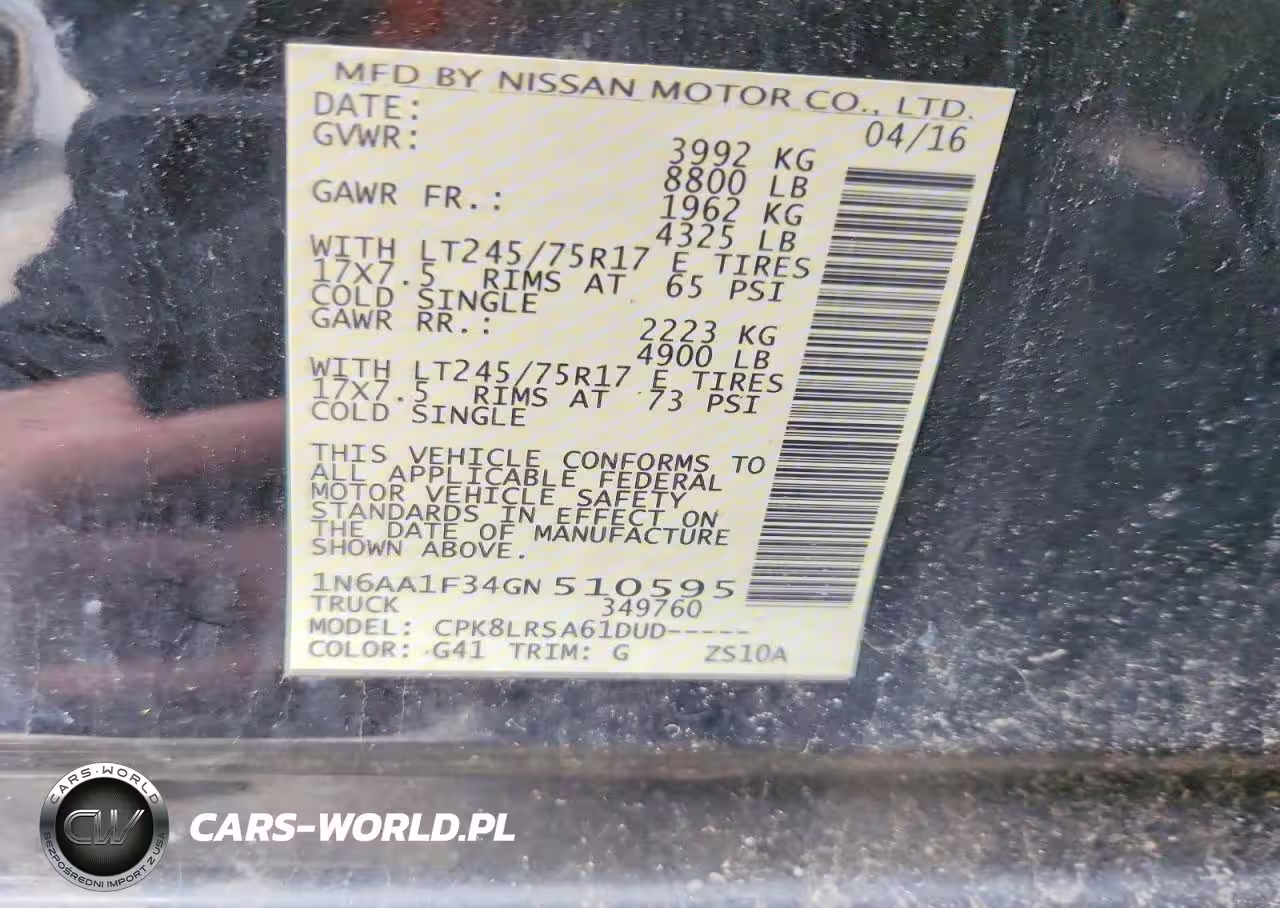 Copart Nr: C-47136946 VIN: 1N6AA1F34GN510595 Port: Elizabeth, NJ