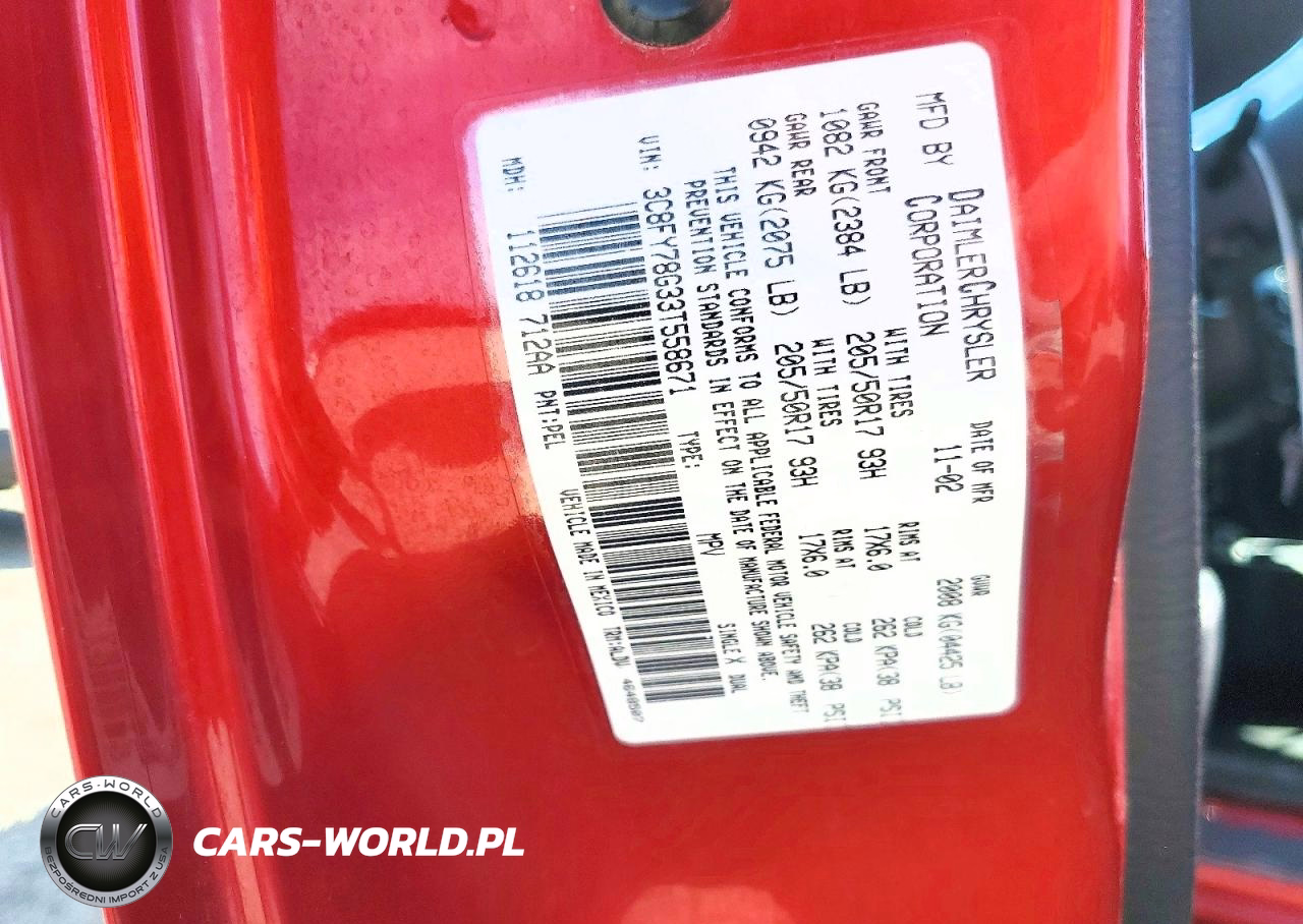 Copart Nr: C-47141336 VIN: 3C8FY78G33T558671 Port: Los Angeles, CA