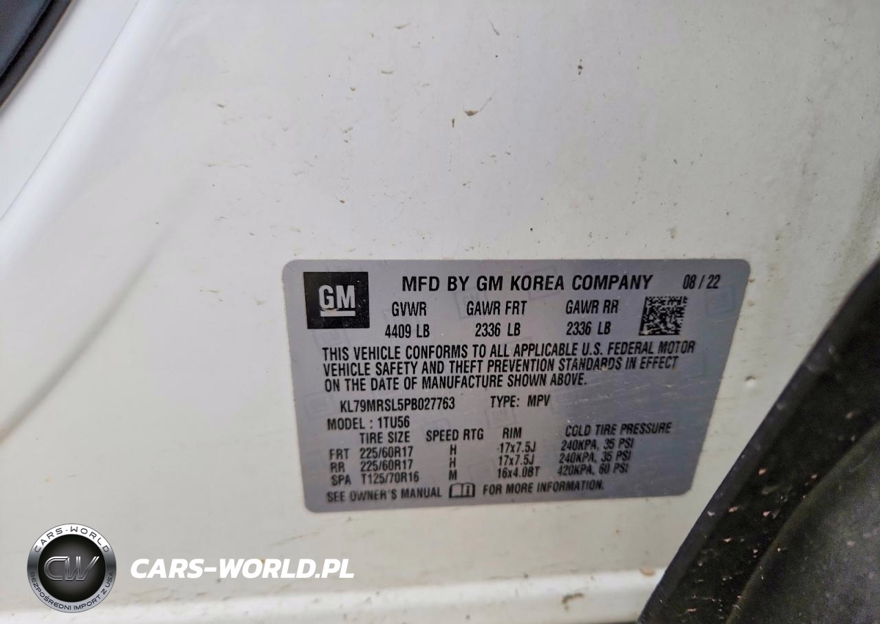 Copart Nr: C-47156206 VIN: KL79MRSL5PB027763 Port: Elizabeth, NJ