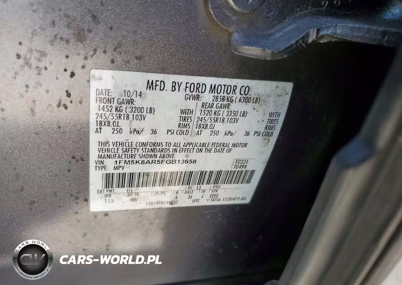 Copart Nr: C-47168776 VIN: 1FM5K8AR5FGB13658 Port: Savannah, GA