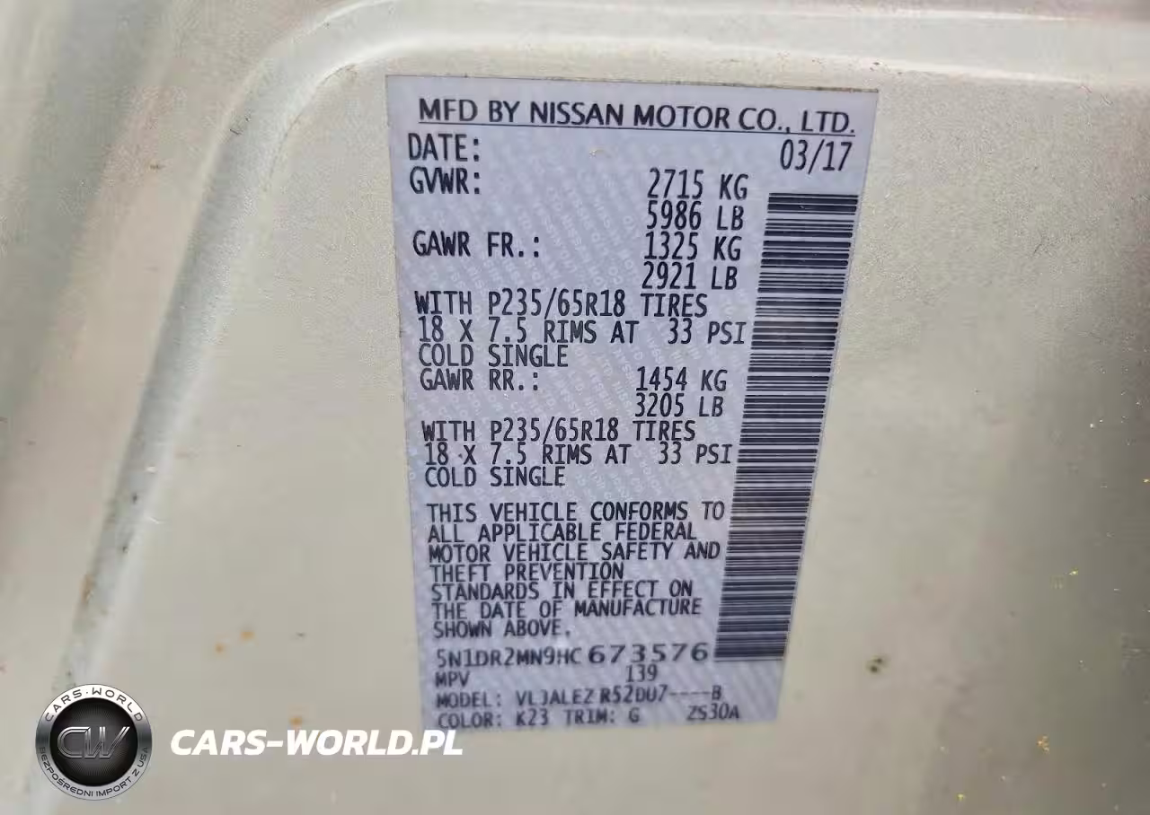 Copart Nr: C-47182896 VIN: 5N1DR2MN9HC673576 Port: Elizabeth, NJ