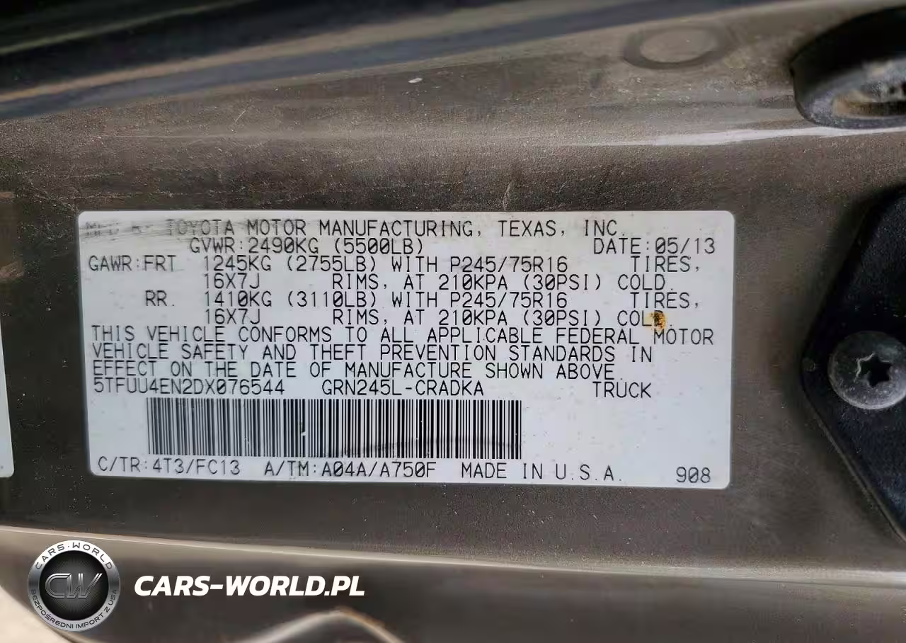 Copart Nr: C-47216096 VIN: 5TFUU4EN2DX076544 Port: Savannah, GA