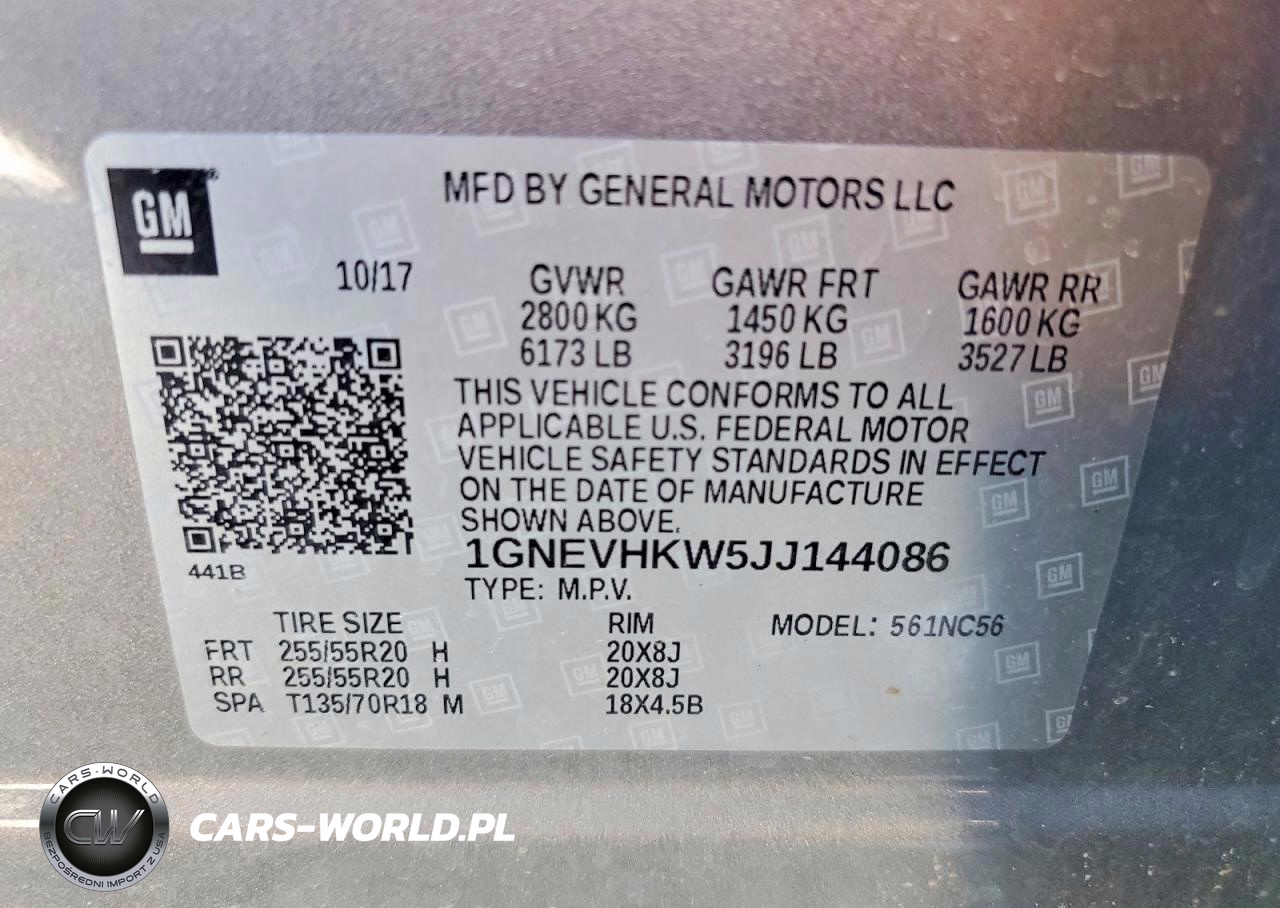 Copart Nr: C-47217826 VIN: 1GNEVHKW5JJ144086 Port: Indianapolis, IN