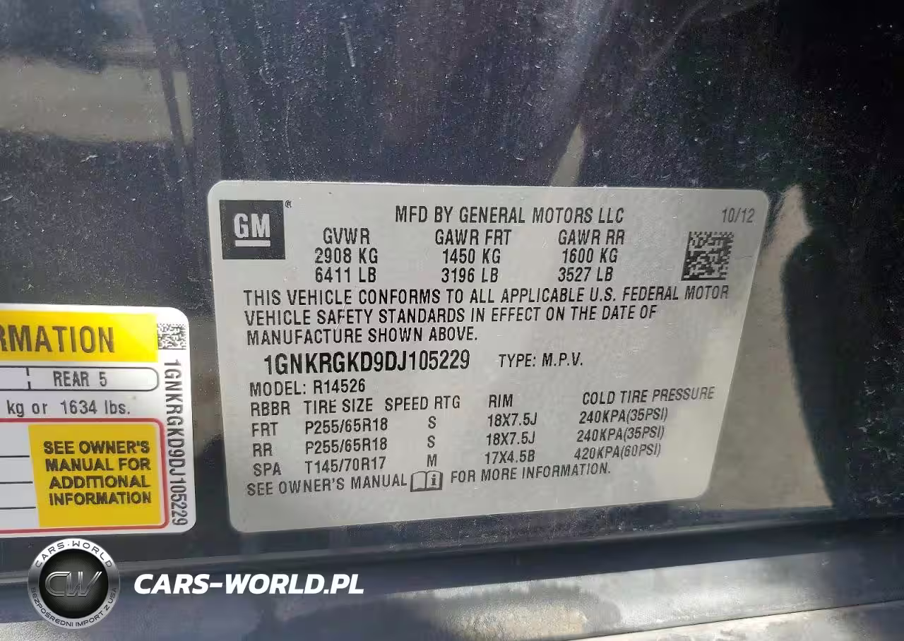 Copart Nr: C-47219236 VIN: 1GNKRGKD9DJ105229 Port: Indianapolis, IN