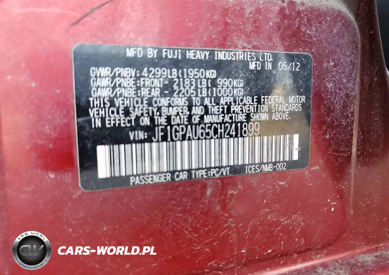 Copart Nr: C-47219326 VIN: JF1GPAU65CH241899 Port: Indianapolis, IN