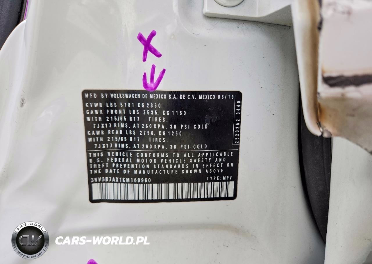 Copart Nr: C-47242776 VIN: 3VV3B7AX1KM169960 Port: Los Angeles, CA