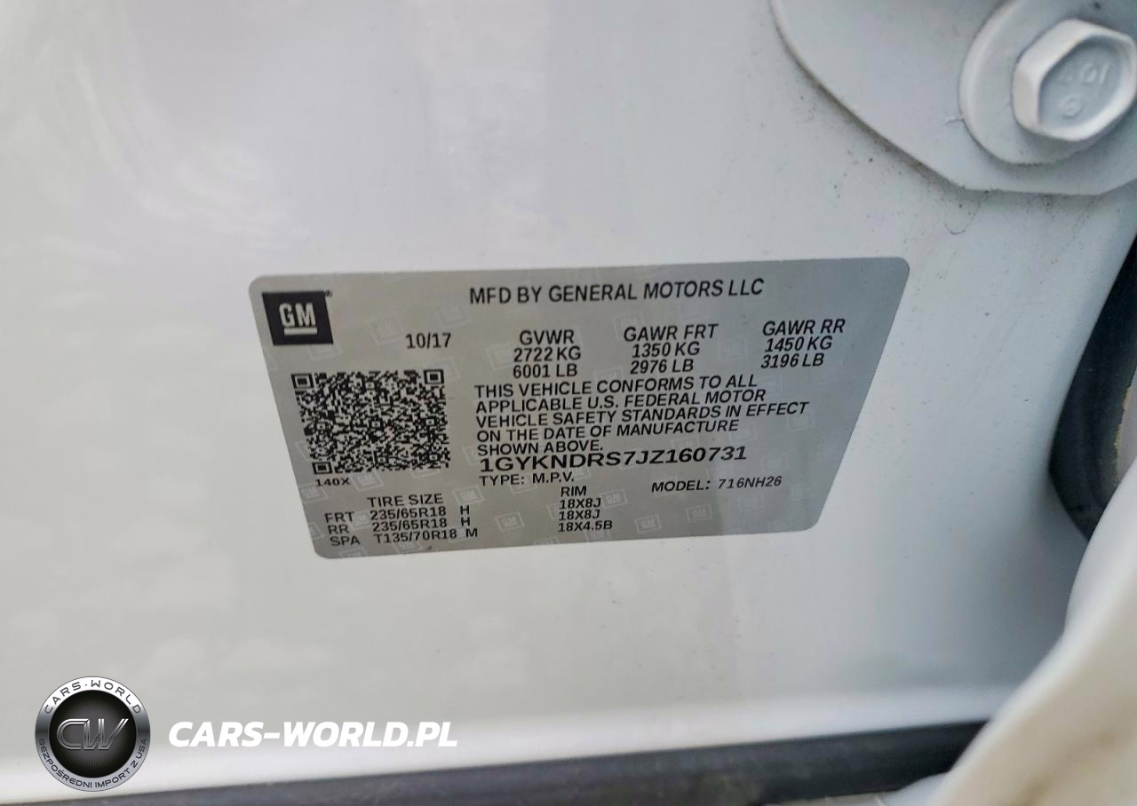 Copart Nr: C-47243996 VIN: 1GYKNDRS7JZ160731 Port: Elizabeth, NJ