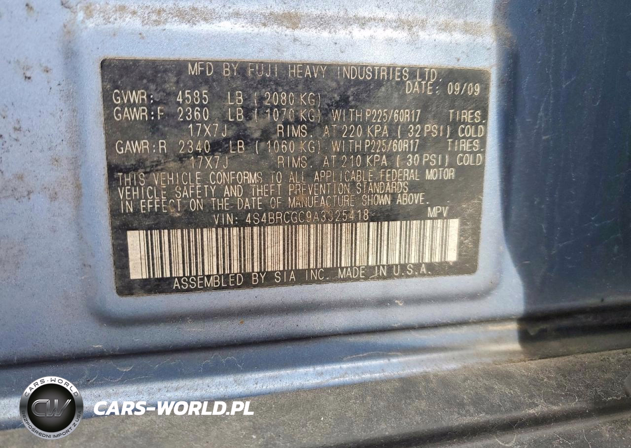 Copart Nr: C-47245026 VIN: 4S4BRCGC9A3325418 Port: Elizabeth, NJ