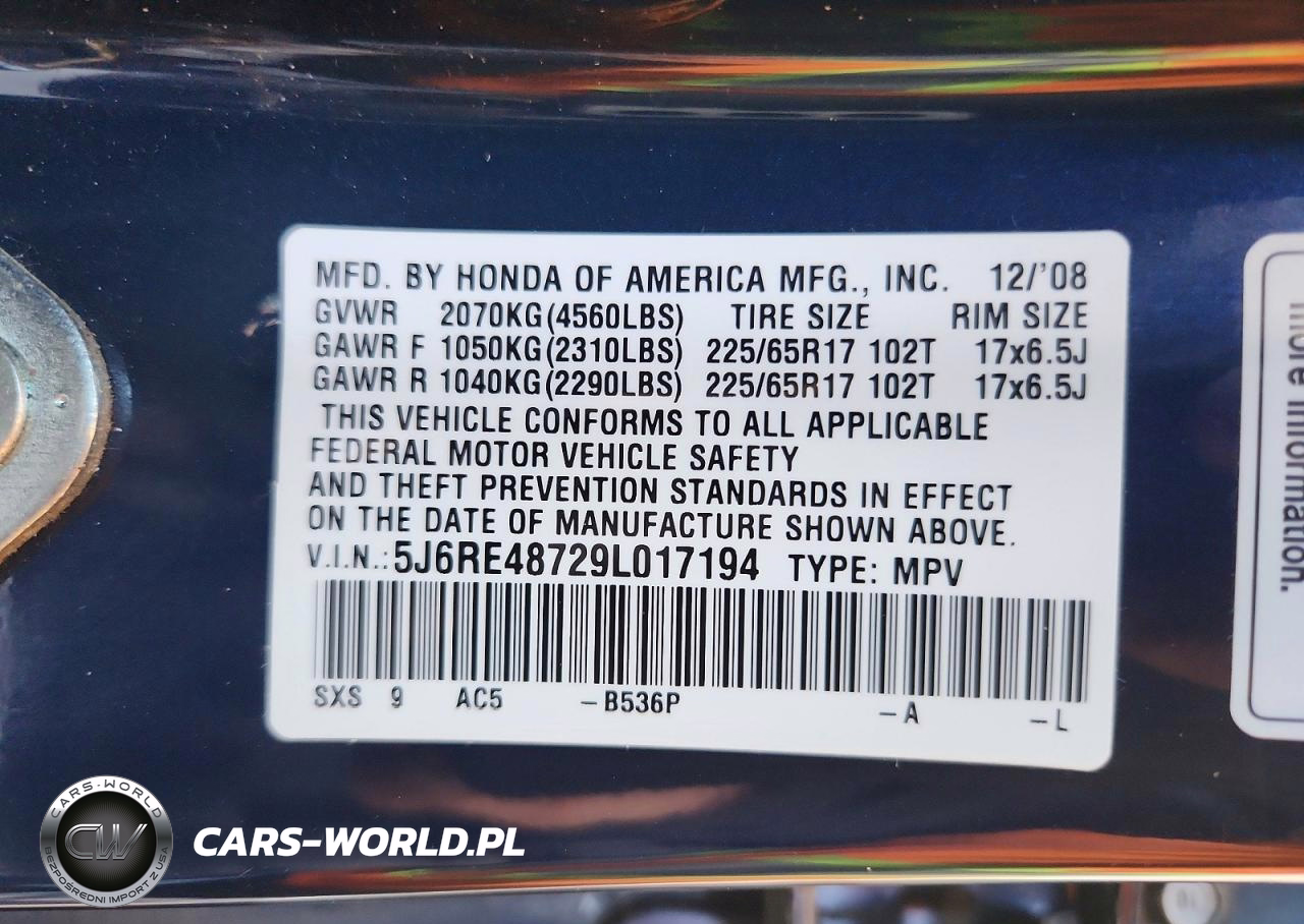 Copart Nr: C-47245066 VIN: 5J6RE48729L017194 Port: Los Angeles, CA