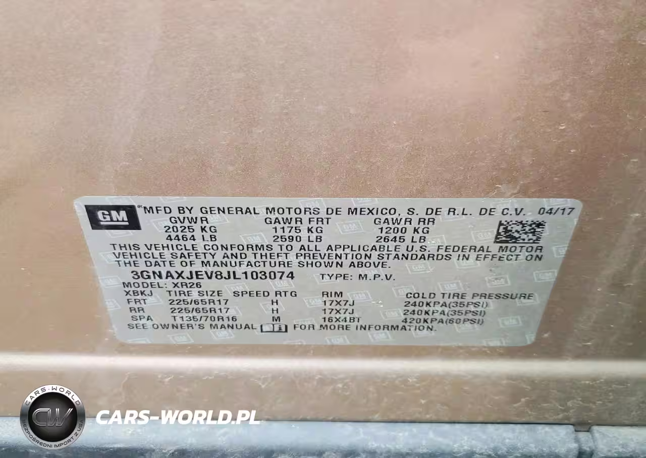 Copart Nr: C-47247406 VIN: 3GNAXJEV8JL103074 Port: Indianapolis, IN