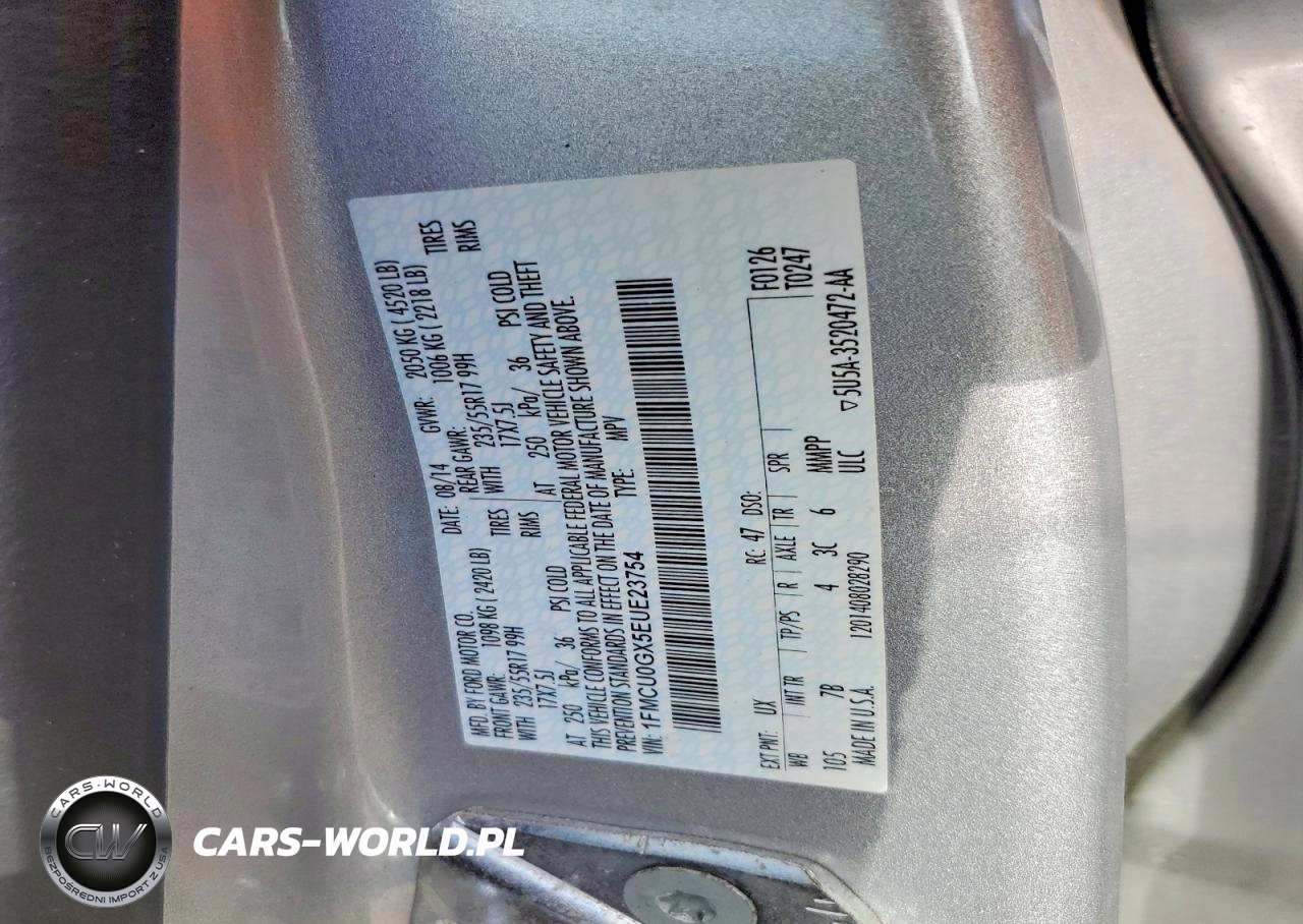 Copart Nr: C-47247866 VIN: 1FMCU0GX5EUE23754 Port: Indianapolis, IN