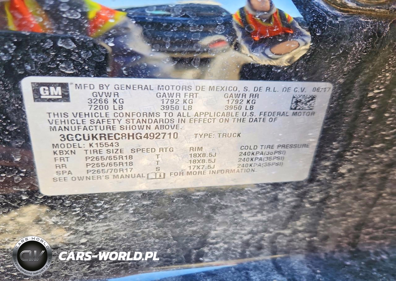Copart Nr: C-47275226 VIN: 3GCUKREC8HG492710 Port: Indianapolis, IN