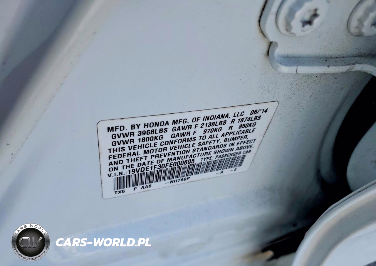 Copart Nr: C-47280716 VIN: 19VDE1F30FE000695 Port: Savannah, GA