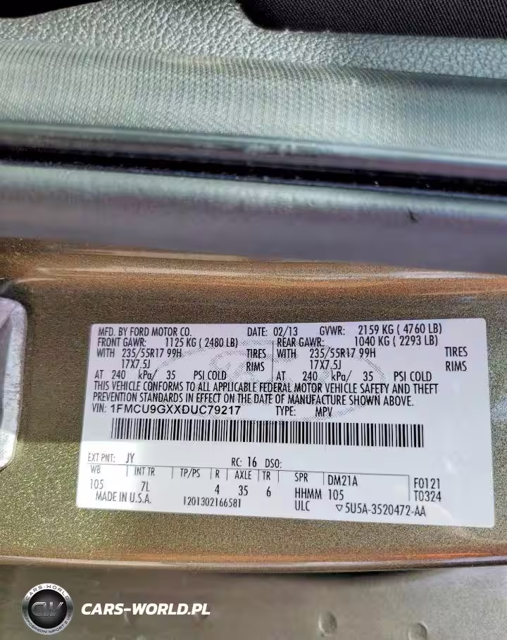 Copart Nr: C-47284316 VIN: 1FMCU9GXXDUC79217 Port: Elizabeth, NJ