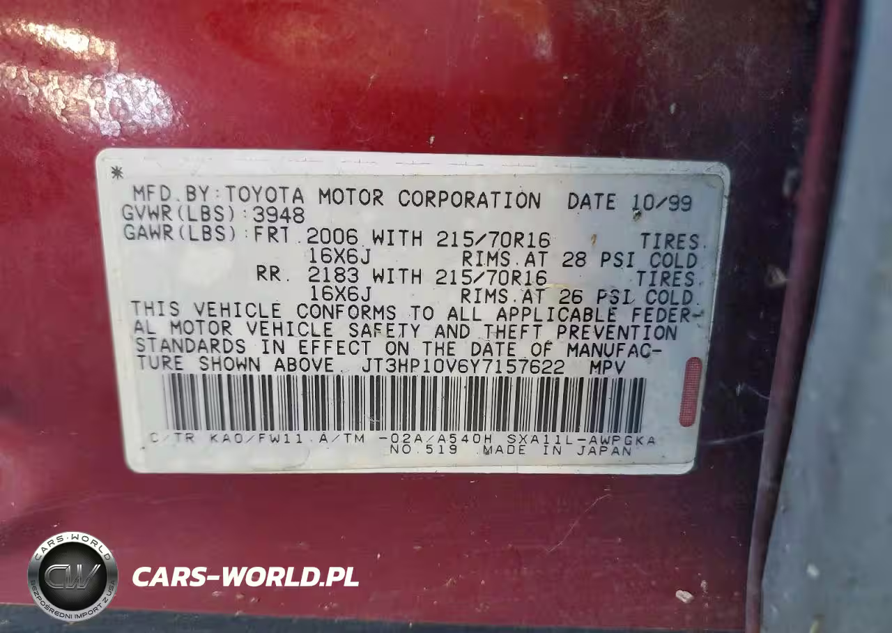 Copart Nr: C-47284726 VIN: JT3HP10V6Y7157622 Port: Los Angeles, CA