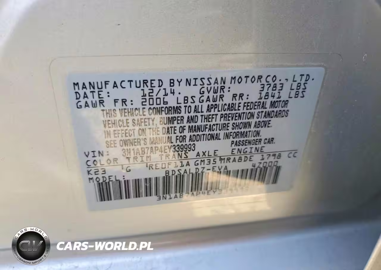 Copart Nr: C-47288056 VIN: 3N1AB7AP4EY339993 Port: Los Angeles, CA