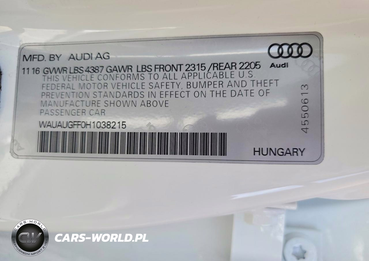 Copart Nr: C-47290426 VIN: WAUAUGFF0H1038215 Port: Los Angeles, CA